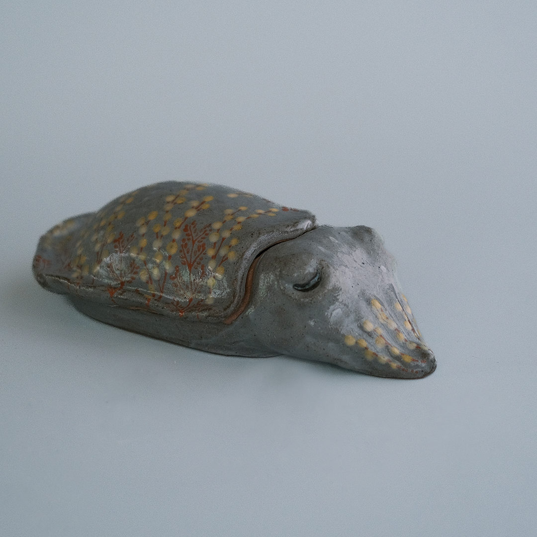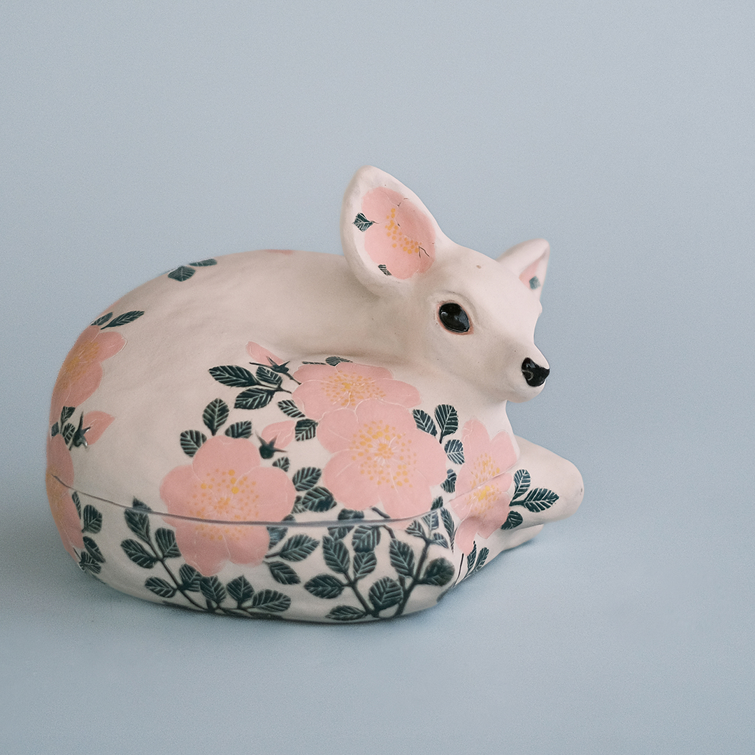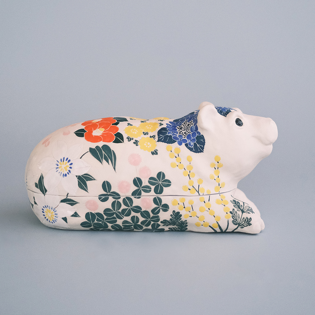 「咲陶展」という名のとおり、四季折々の草花たちの装いを纏った海や山のさまざまな生き物たちを見つめるだけで笑みがこぼれます。昨年末のまだ冬真っ盛りの日曜日に丹波にある春奈さんの窯まで伺い、半日かけて撮影。とにかく春奈さんの作品の魅力が一人でも多くの方に伝わるようにと1作品ずつ向き合いました。
