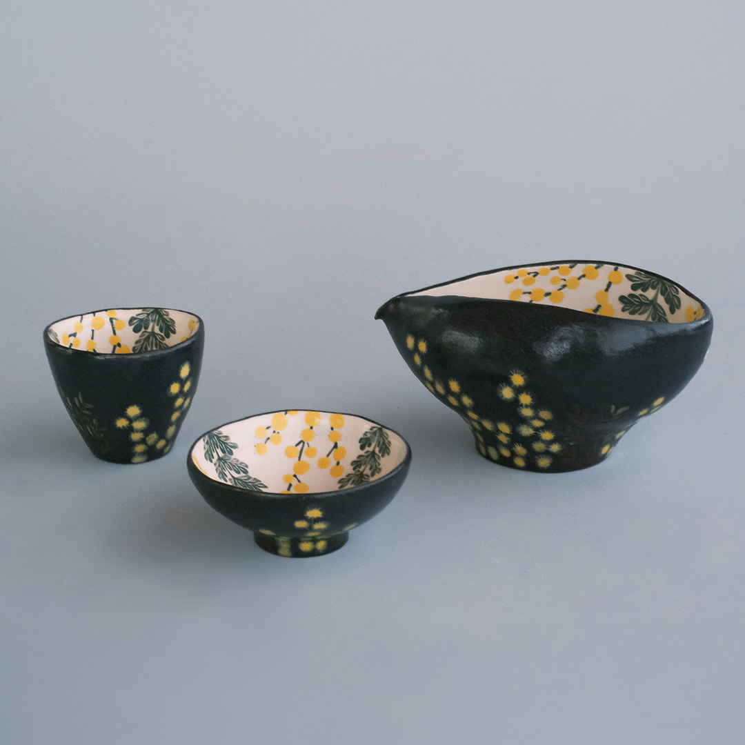 野山に咲く草花や生き物たちが微笑み、手にとり見つめるだけで思わず笑みがこぼれる春奈さんの器たち。