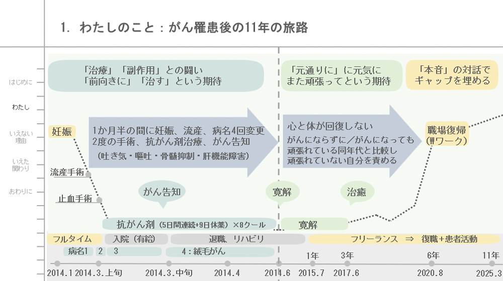 体験談の主な構成は変わらず、まず患者としての背景や、罹患後11年という患者人生の旅路という大きな流れをみなさんと共有します。
